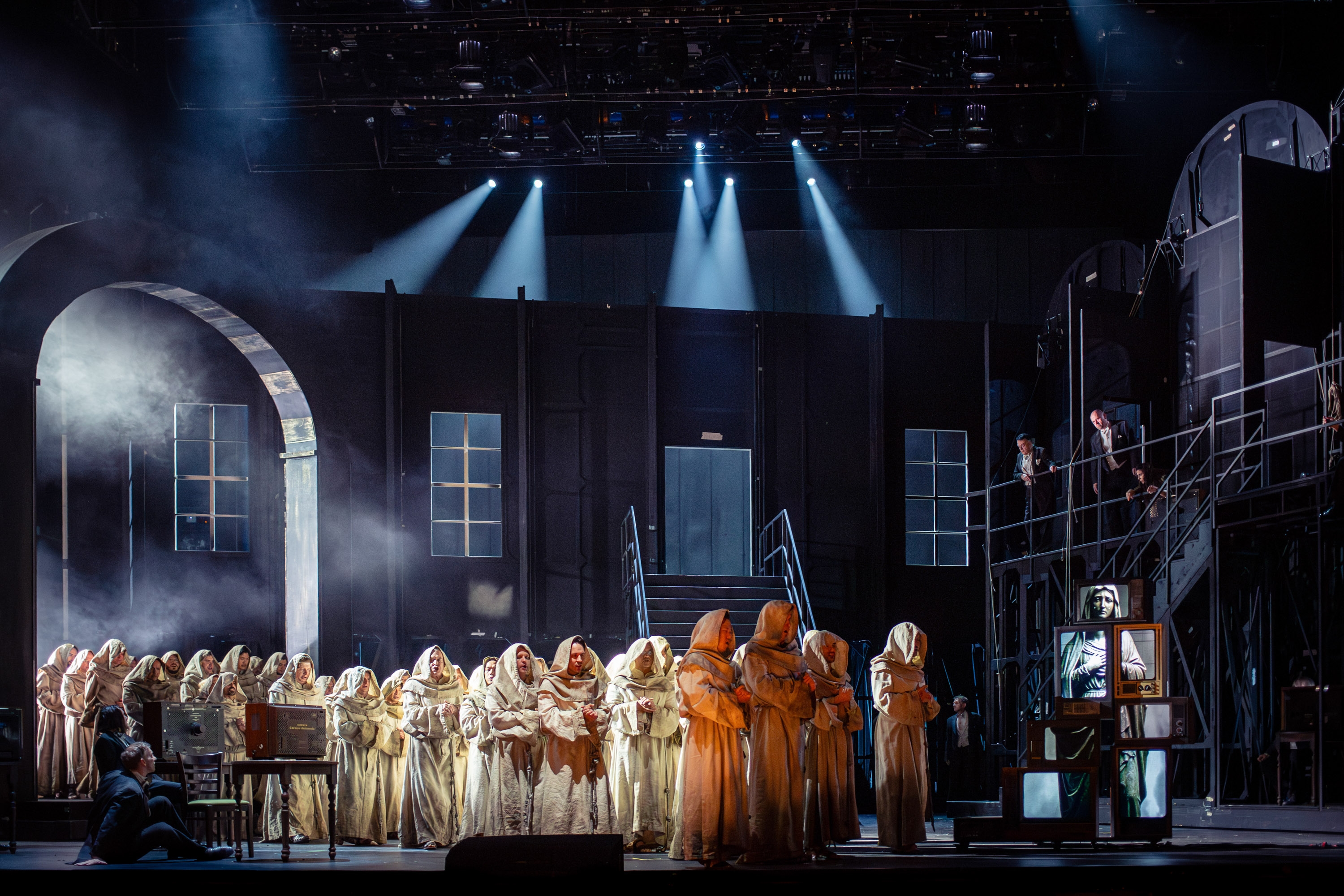 Lydia Steiers Inszenierung zeigt uns drei Welten: Eine schillernde Varieté-Atmosphäre, in der Venus beheimatet ist – der 1. Aufzug. Dann die kalte, restriktive Wartburg-Welt (2. Aufzug) und eine illusionslose Medienlandschaft im dritten Aufzug. Als zweite Ebene fügt Steier eine Theater-Zeitreise ein: Beim Kult, der Publikum vom Zuschauenden nicht trennt, beginnt es, dann führt der Weg zum sinnlichen Barocktheater und landet in der klassischen getrennten Zuschauer-Darsteller-Situation; schließlich führt Steier uns in eine Landschaft, in der die Vereinzelung um sich gegriffen hat und blinkende Bildschirme die Aufmerksamkeit auf sich ziehen. Bis sie in den letzten Augenblicken den Bogen zum barocken Theater zurückschlägt.